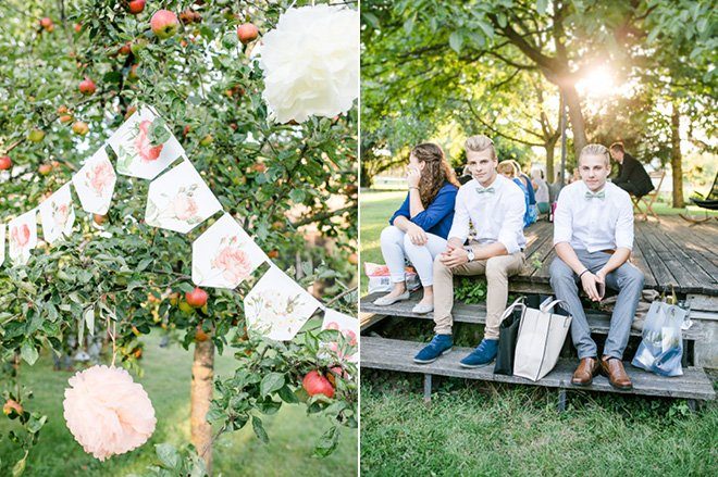 Die beiden wünschten sich ein lockeres, aber liebevolles Fest im Freien. Ihre Kinder, längst im Teenager Alter, die Familien und viele Freunde sollten dabei sein. “Bei unserer Hochzeit und der Umsetzung war uns am wichtigsten, dass sie persönlich wird und uns voll und ganz entspricht. Wir sehen als Hochzeitsfotografen ja viele Feiern und wussten von Anfang an, was wir uns wünschen, was wir aber auch auf gar keinen Fall wollen/brauchen. Zuerst einmal haben wir uns dazu entschieden, nur unseren „engsten Kreis“ einzuladen: unsere 7 Kinder, unsere Eltern und Geschwister. Darüber hinaus haben wir aber all die Freunde eingeladen, mit denen wir in regelmäßigem Kontakt stehen, die unser Leben täglich bereichern. Auf unserer Hochzeit war niemand, den wir nicht total gerne um uns haben, das finde ich für eine Hochzeit ganz, ganz wichtig!” berichtet Nora.