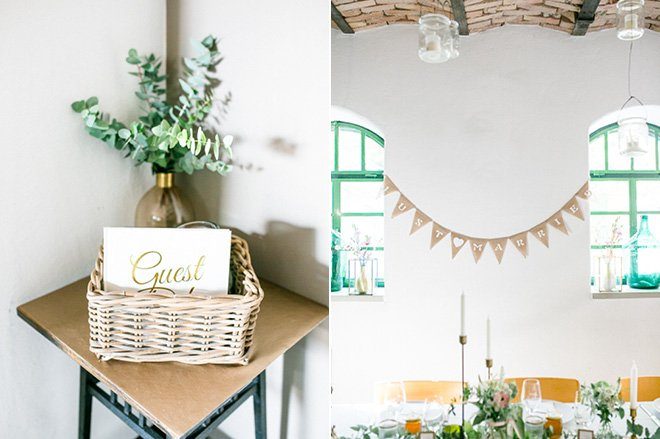“Eigentlich wollte ich am Tag vor der Hochzeit die Dekoration der Location selbst übernehmen, aber meine liebe Freundin und Kollegin Stefanie von Mademoiselle Fee hat angeboten, das – und im Endeffekt dann noch vieles mehr an Gestaltung vor Ort – für uns zu übernehmen. Im Nachhinein gesehen bin ich so froh, das in Profihände übergeben zu haben, denn es hat unglaublich viel Stress genommen. Wenn man jemanden hat, dem man vertraut und auf den man sich verlassen kann, sollte man so viel wie möglich in andere Hände geben.