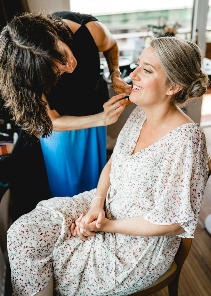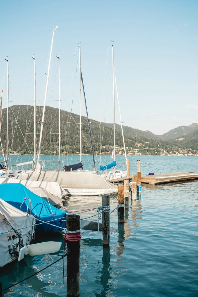 Kann ein Hochzeitstag entspannter beginnen? Wohl kaum. Beim Styling gleitet der Blick der Braut über der funkelnde Blau des Tegernsees. Boote dümpeln an der Anlegestelle und ein lauer Wind streift durch das Schilfgras.
