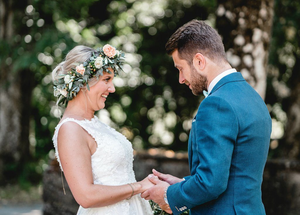 Das Brautpaar hat sich für ein sog. ‘First Look’ Shooting entschieden. Dies bedeutet, dass sie sich nicht bei der Trauung zum ersten Mal sehen, sondern bereits früher.