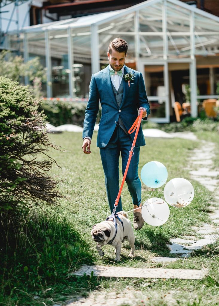 Es ist aber auch einfach schön! Der Bräutigam zieht mit Hund ein und wartet strahlend auf seine umwerfende Braut. Dazu diese Umgebung – da bliebt ganz bestimmt kein Auge trocken!