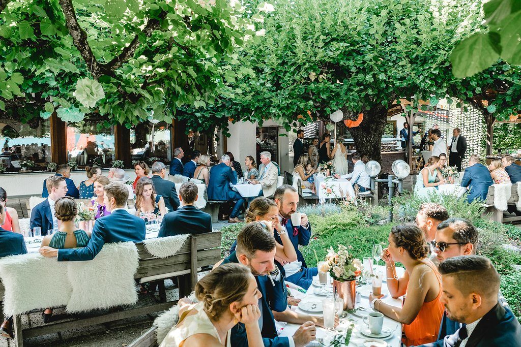 Irgendwie möchte man gar nicht, dass dieser Tag zu Ende geht. So sehr Spaß macht es jedes Detail aufzusaugen und zu betrachten. Alleine das wunderbare Sommerlicht am See, die Lichter, der in der Dämmerung angehen und natürlich das frisch vermählte Paar und seine liebevollen Gäste. Hach, ich kann sehr gut erahnen, was für ein prächtiges Fest das gewesen sein muss!