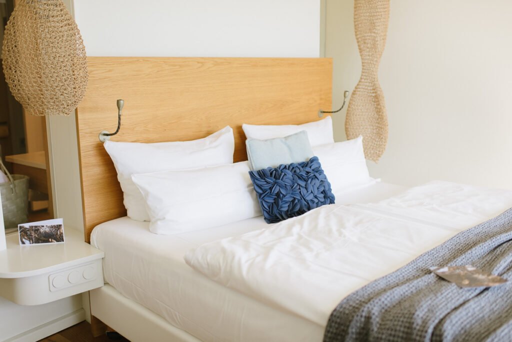 Ich mag die Architektur und das Innendesign so gerne! So viel herz steckt darin, so durchdacht ist es. Auch unter nachhaltigen Aspekten übrigens! Die Lamellen der Balkonverkleidung sind beispielsweise auf Schatten optimiert, was ein Erwärmen der Zimmer reduziert. Es gibt keine klassische Klimaanlage, sondern ein Kühlungssystem über die Böden und Decken.