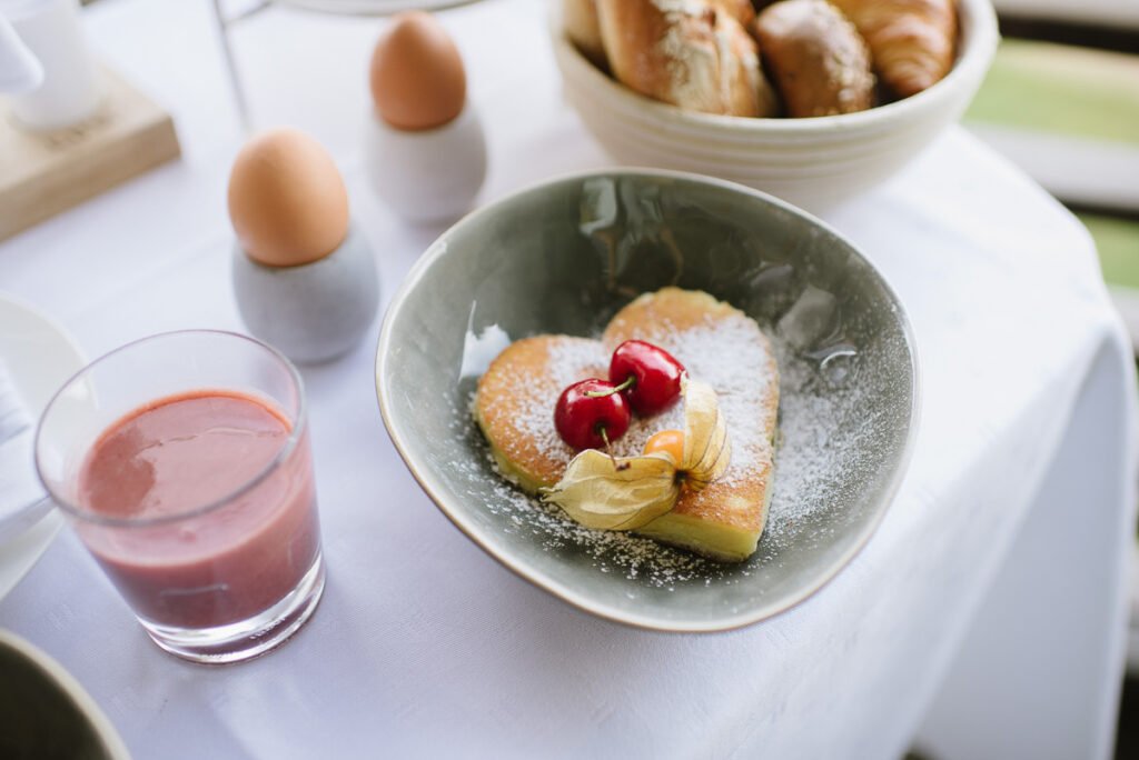 Man bucht mit dem Zimmer eine Verpflegung vom Feinsten. Ein hervorragendes Frühstücksbuffet, Kaffee und Kuchen am Nachmittag und einem fantastischen vier Gänge Menü am Abend. Soweit möglich werden regionale Zutaten genutzt, das Brot, die Kuchen und alles Gebäck werden in der Hauseigenen Patisserie gebacken.