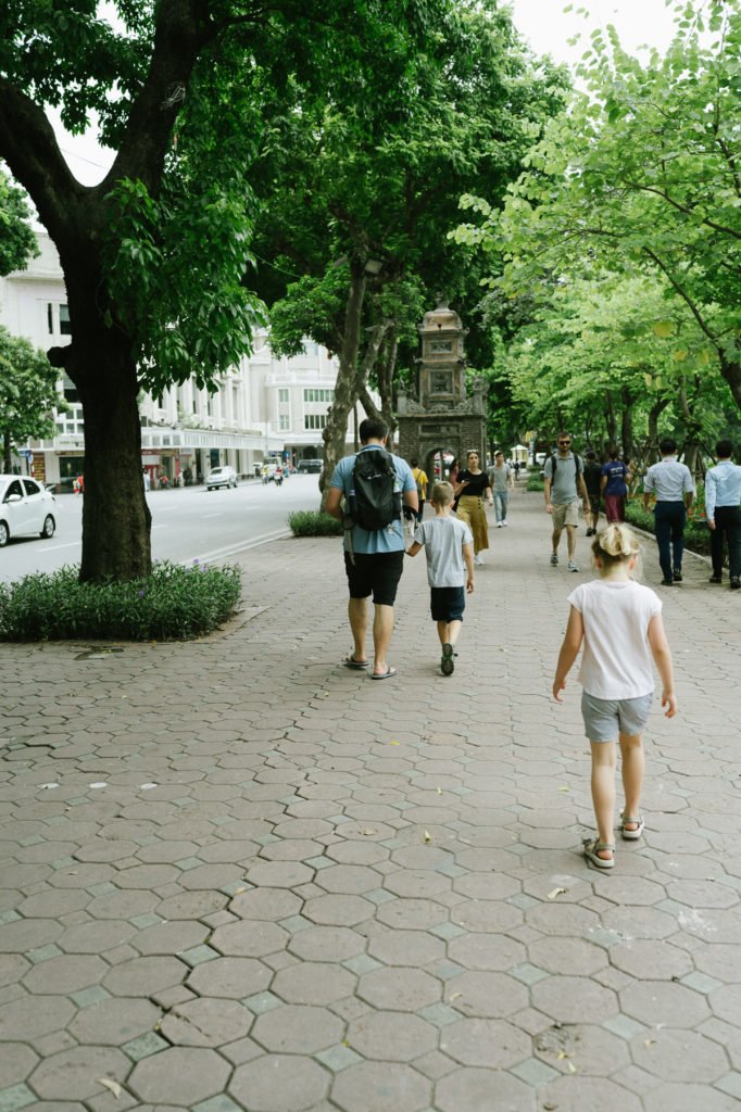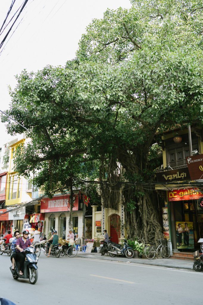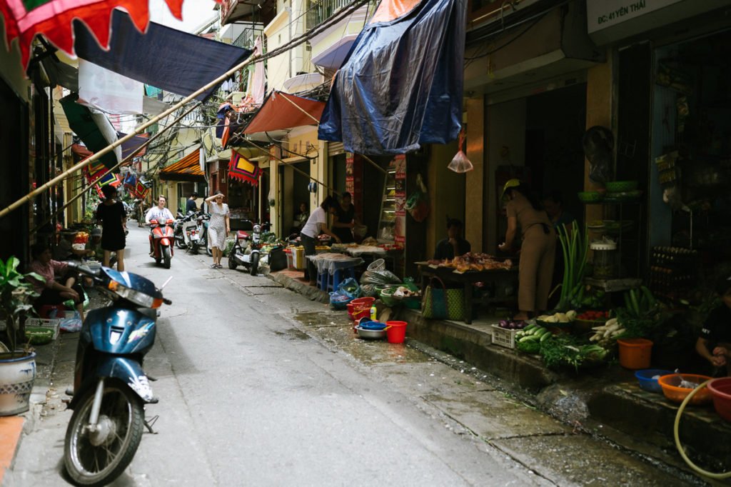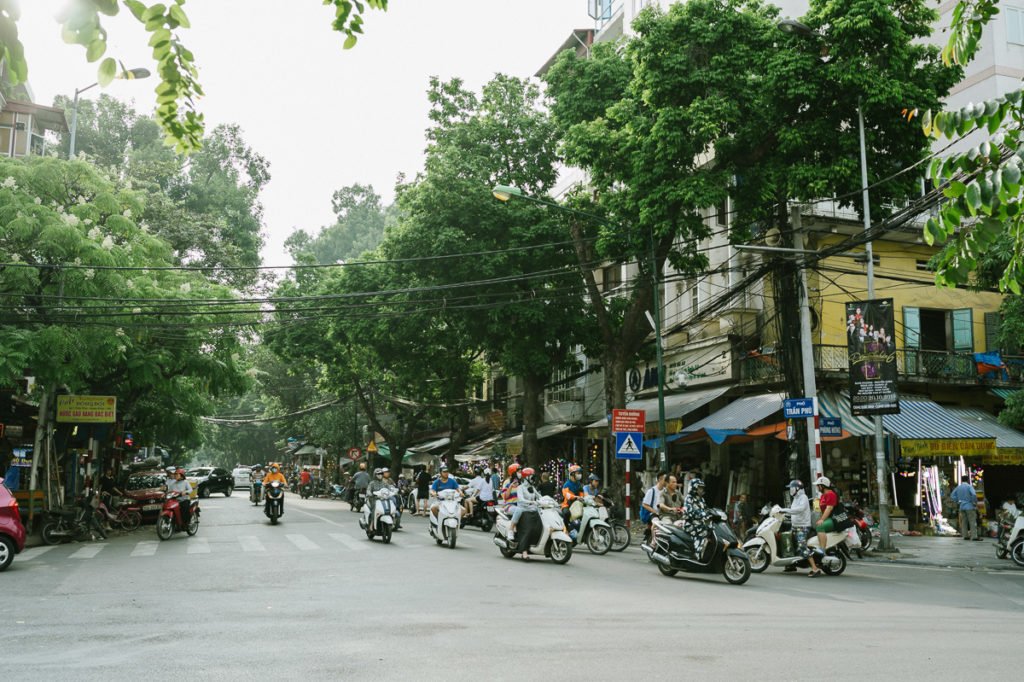 Hanoi ist Asien pur. Es ist heiß, laut, trubelig. Die Luft ist durch Millionen von Rollern abgasgetränkt. Bürgersteige sind dank Garküchen, Waren aller Art, geparkten Mopeds und Menschen kaum begehbar, was zur Folge hat, dass man auf der Straße läuft. Was wiederum bedeutet, dass man den Mopeds sehr nahe kommt und auf kürzeste Distanz angehupt wird.