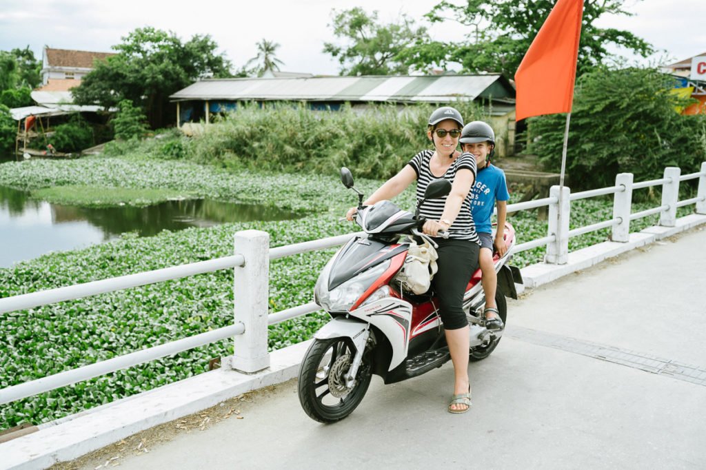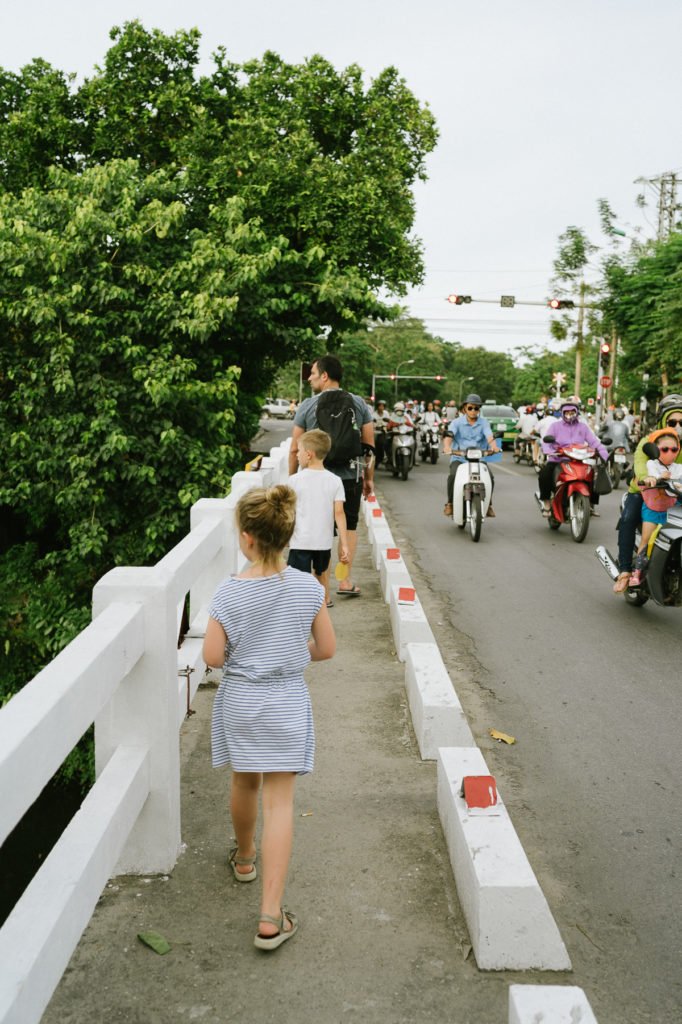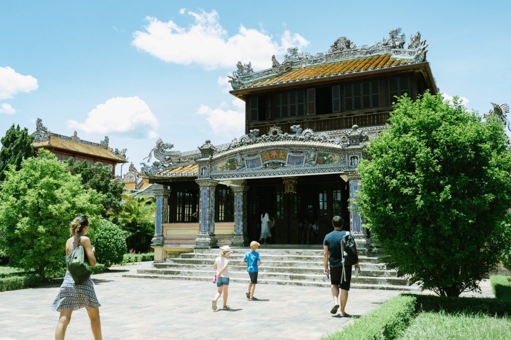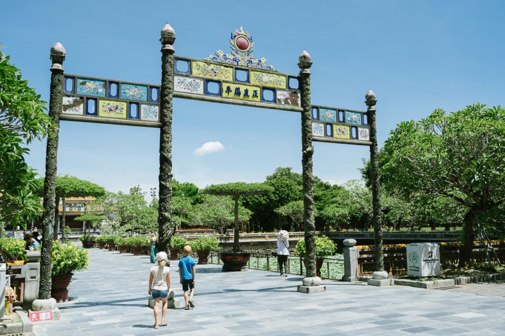 Hue hat uns deutlich entspannt. Der Verkehr war einfach viel überschaubarer als in Hanoi. Daher haben wir uns zwei Roller im Hotel gemietet, um uns frei zu bewegen. Es hat gut geklappt, auch mit den Kindern. Nur über die Helme wollen wir lieber nicht sprechen…