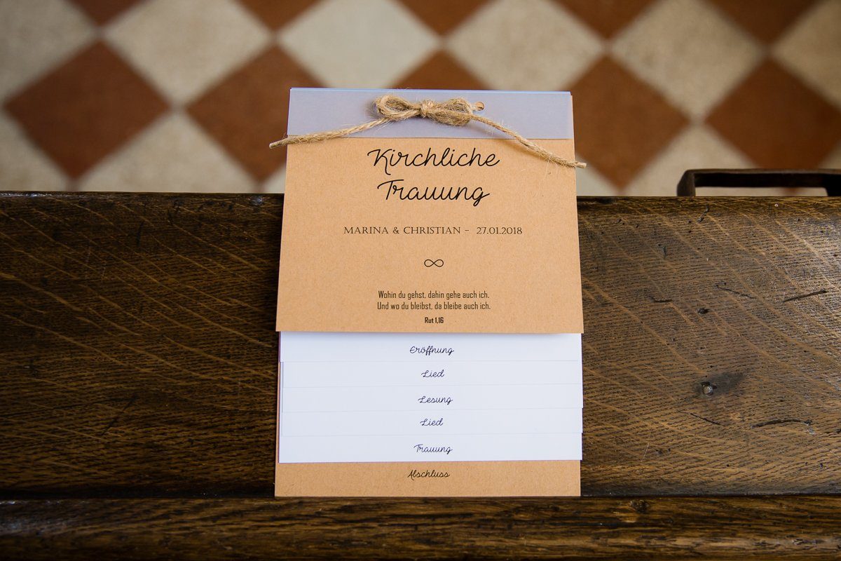 Die Papeterie aus Kraftpapier und graublauen Akzenten unterstrich den Look der zauberhaften Winterhochzeit ebenfalls.