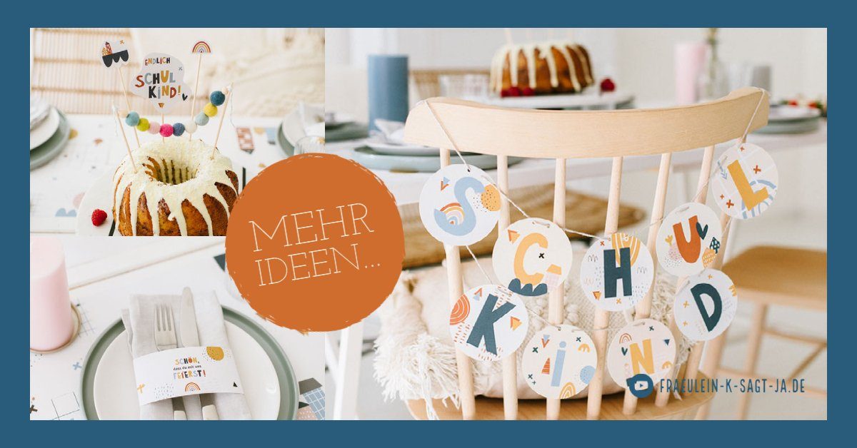 Endlich! Der erste Schultag rückt näher! Die Einschulung wird selbstverständlich mit der Familie gefeiert! Mit unseren Dekoideen kreiert Ihr ein wunderbares Einschulungsfest mit liebevollen Details. Einladungskarte, Tischsets, Banderolen haben wir für euren ersten Schultag. Mit Ballons, Konfetti und einer Girlande wird die Einschulung noch unvergesslicher. Im Blogpost Einschulung dekorieren: Bunte Buchstaben zum Schulanfang gibt es weitere Deko-Inspirationen, einen DIY Cake Topper aus Filzperlen, Tipps zum Füllen der Schultüte und schönen Ideen für das Gastgeschenk zur Einschulung.