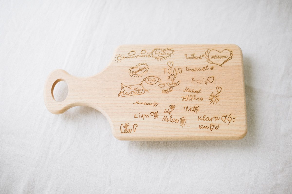 PersonalisierbarPersonalisiertes Schneidebrett mit Kinderzeichnungen – ein einzigartiges Abschiedsgeschenk für Lehrer & Erzieher