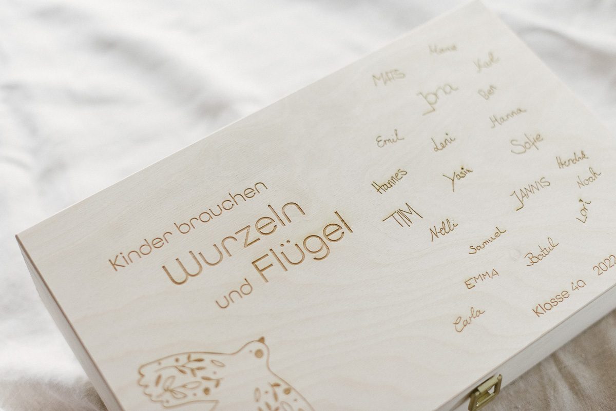Sie sind langlebig, stilvoll und individuell gestaltbar – ideale Geschenkideen mit Gravur für alle, die Wert auf Qualität und persönliche Geschichten legen. Ob als gemeinsames Team- oder Klassengeschenk, Hochzeitsandenken, alternatives Gästebuch oder einfach nur, um jemandem eine Freude zu machen – unsere Holzartikel sind mehr als nur Dekoration. Sie sind ein Symbol für Verbundenheit und besondere Momente.Jetzt dein persönliches Holzgeschenk gestalten