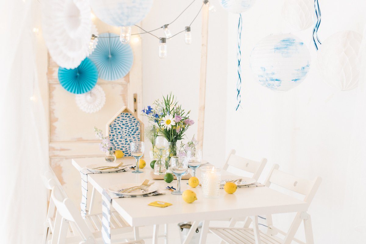 Sommerfrische mit guten Freunden – sommerliche Tischdeko in blau und gelb!