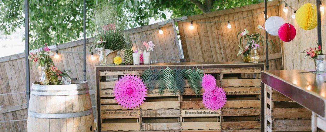 Knallige Farben, hier und dort eine Ananas und ein cooler Flamingo, der zwischen Palmwedeln hervor blinzelt - fertig ist die Dekoration für Eure Tropical Party! Sommerfeste im tropischen Stil machen einfach gute Laune. Die fröhliche Deko mit Girlanden, Wabenbällen und Ballons lässt sofort gute Laune aufkommen. Ob Garten oder am Strand, mit coolen Cocktails und rhythmischer Musik kommen alle in Sommerlaune. Haltet Strohhalme, Sonnenschirme und genügend Eis bereit!