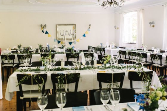 Gelb-blaue Sommerhochzeit