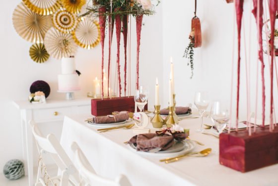 Herbsthochzeit mit Beerentönen und Roségold