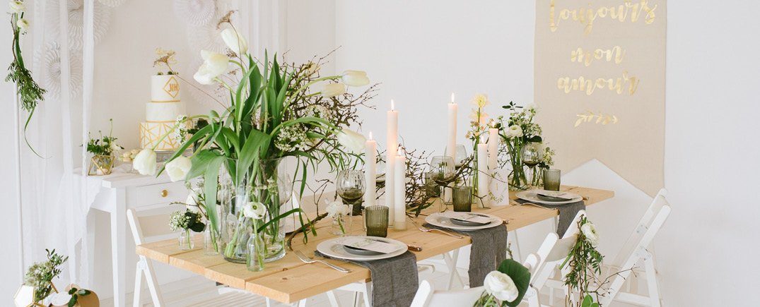 Heiratet wild. Heiratet frei. Heiratet, wie es zu Euch passt! Frühlingshaft, lässig und dennoch festlich ist die Dekoration dieser Frühlingshochzeit, die wir für Euch entworfen haben. Absoluter Hingucker: Die trockenen Zweige in der Mitte des Tisches und eine üppige Floristik mit französischen Tulpen in Kombination mit den langen Cylinderkerzen. Solch ein außergewöhnlicher Hingucker! Auf dem Blog findet Ihr das gesamte Shooting zu Inspiration für Eure Frühlingshochzeit!