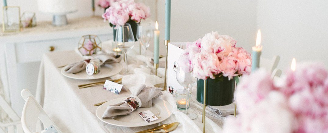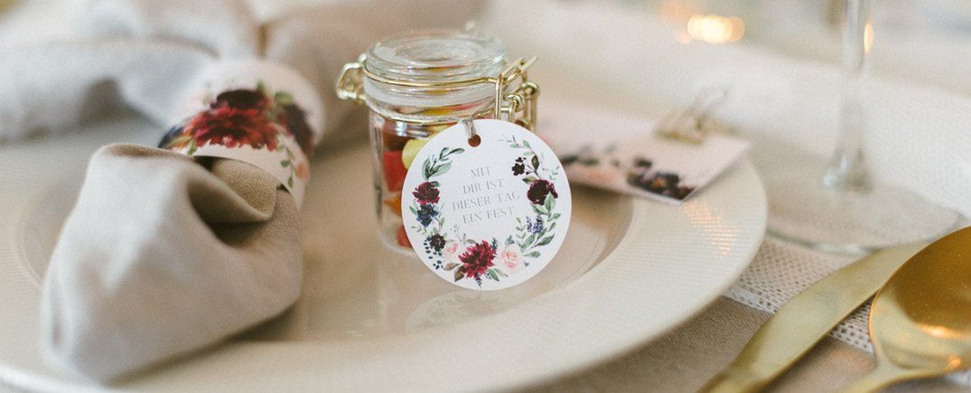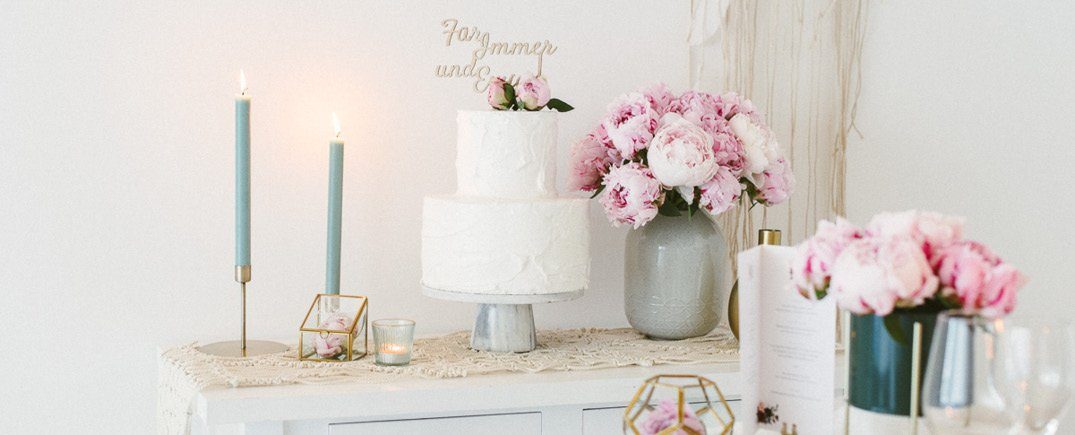 Pfingstrosen sind für mich die Königinnen der Blumen! Schaut sie euch einfach an, wie schön sind die bitte?! Diese zarten Blätter, die in voller Blüte prachtvoll und üppig erscheinen. Eine absolute Hochzeitsblume, die gar nicht mehr viel braucht, um im Brautstrauß oder der Tischdekoration zu wirken. Wir haben der wunderbaren Pfingstrosen in diesem Jahr kräftige Partner zur Seite gestellt: ein sanftes Salbei und ein starkes Dunkelgrün. Mit den kräftigen Akzenten der Papeterieserie 'Burgundy' und einzelnen Highlights in Gold wird daraus ein eleganter Look mit leichtem Boho Touch. In diesem Blogpost findest Du weitere Deko Ideen zu diesem wunderbaren Look!