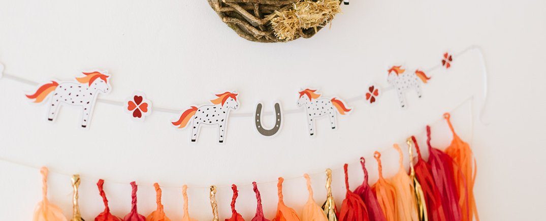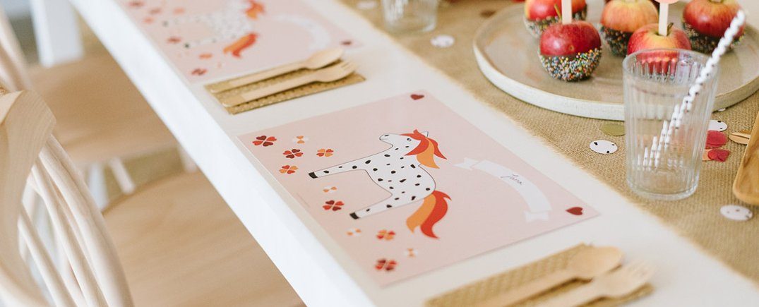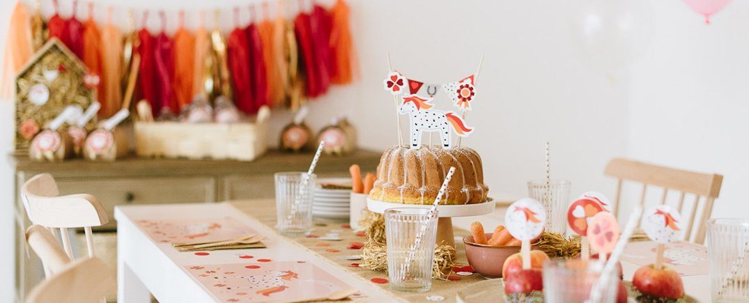 Das Glück der Erde liegt auf dem Rücken der Pferde! Kein Wunder, dass das Motto Pferdegeburtstag bei Kindern so gut ankommt. Mit der Fräulein K sagt Ja Geburtstagsbox ist die Dekoration im Handumdrehen erledigt. Süße Pferdchen mit buntem Schweif feiern eine liebevolle Party. Es warten Schokoladenäpfel und ein leckerer Kuchen mit süßem Cake Topper auf die Gäste und das Geburtstagskind. Im Blogpost findet Ihr weitere Dekorationsideen für Eure Pferdeparty: Pferdegeburtstag mit der Fräulein K Geburtstagsbox
