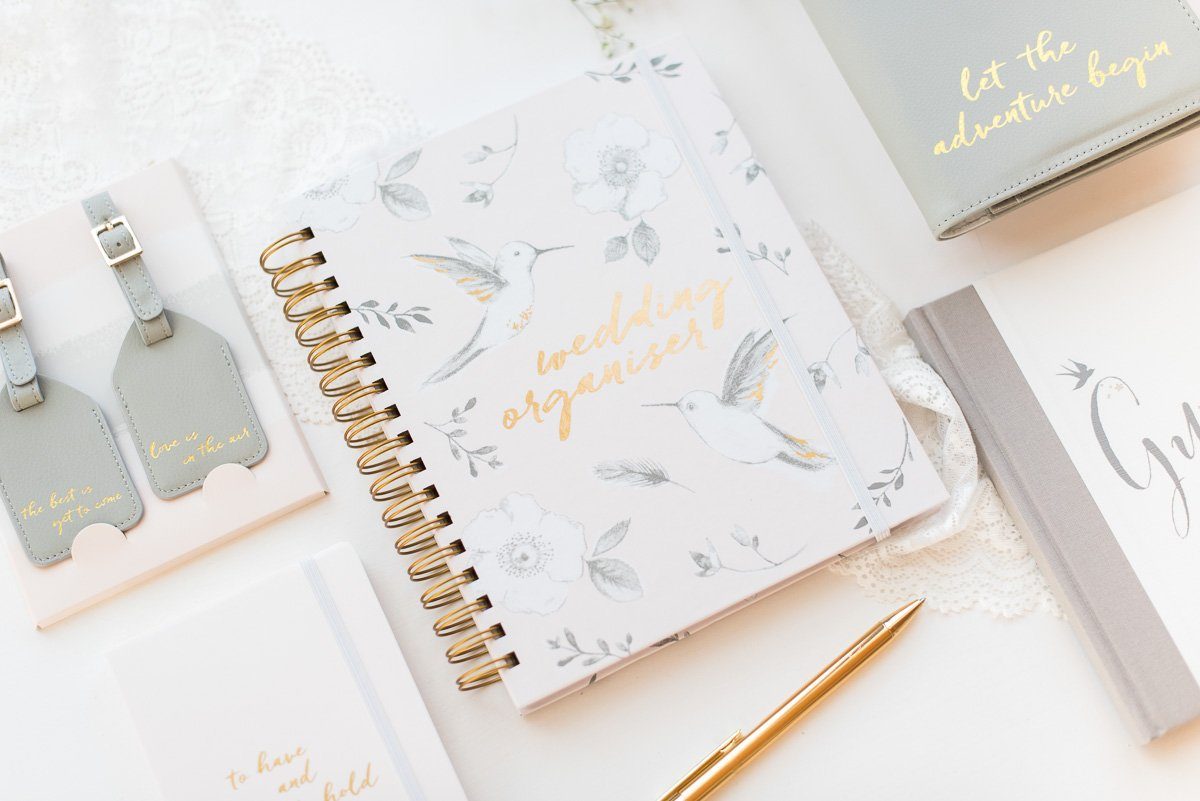 Mit dem Wedding Organizer und einem Notizbuch könnt ihr den Verlobten schon vor der Hochzeit eine Freude machen! Das Gästebuch hält am großen Tag die liebevollen Glückwünsche und Gedanken der Gäste für das Brautpaar fest. Und mit einem eleganten Reiseetui und zwei dazu passenden Kofferanhängern könnt ihr dem Brautpaar die Flitterwochen versüßen.