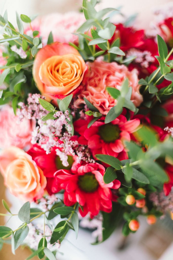 Mein Tipp: nehmt eine höhere Vase und steckt erst mal alle Stiele hinein. Die Blumen, die außen im Strauß stehen sollen, kürzt Ihr etwas. Die, die innen sind, häufig eine der auffälligeren Blüten, bleiben am längsten.