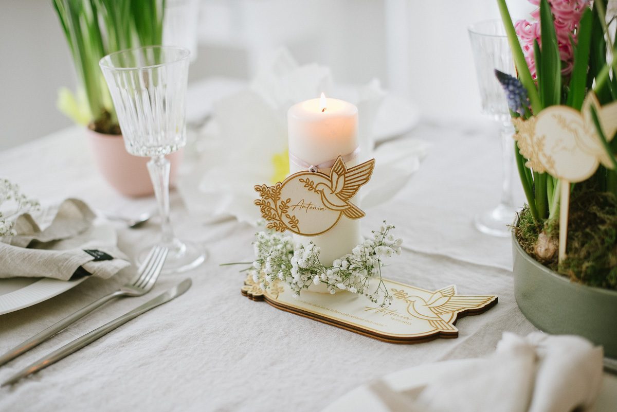 • Konfirmation & KommunionStilvolle Dekoration für das Kommunions- oder Konfirmationsfest. Tischdeko, Gästebuch und liebevolle Details für das Fest.