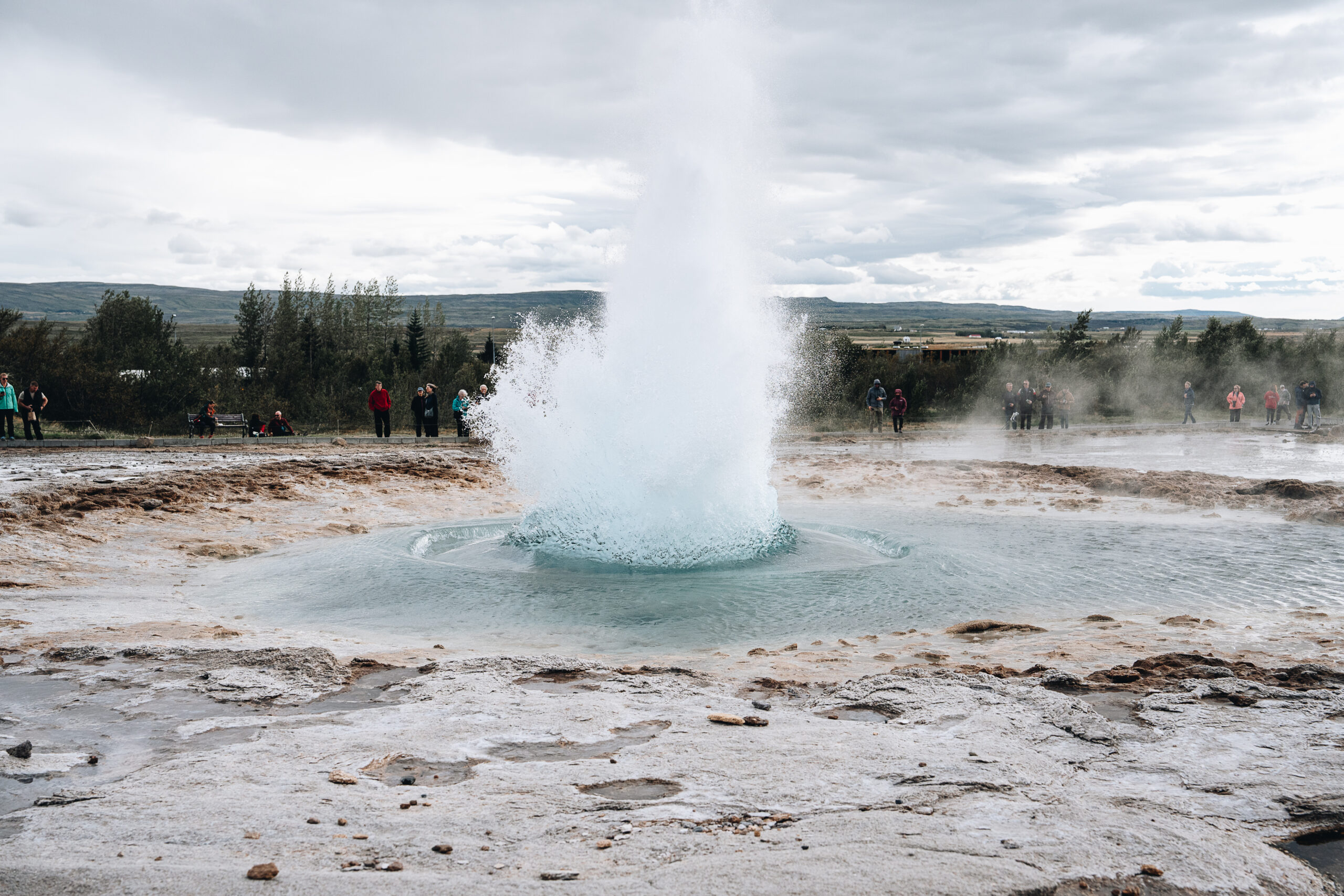 Geysire die zuverlässig alle 10 Minuten ausbrechen tragen auch zum Erstaunen bei! Allen voran der stolze Strokkur, dessen Fontaine bis zu 30m hoch und in den Himmel steigt.