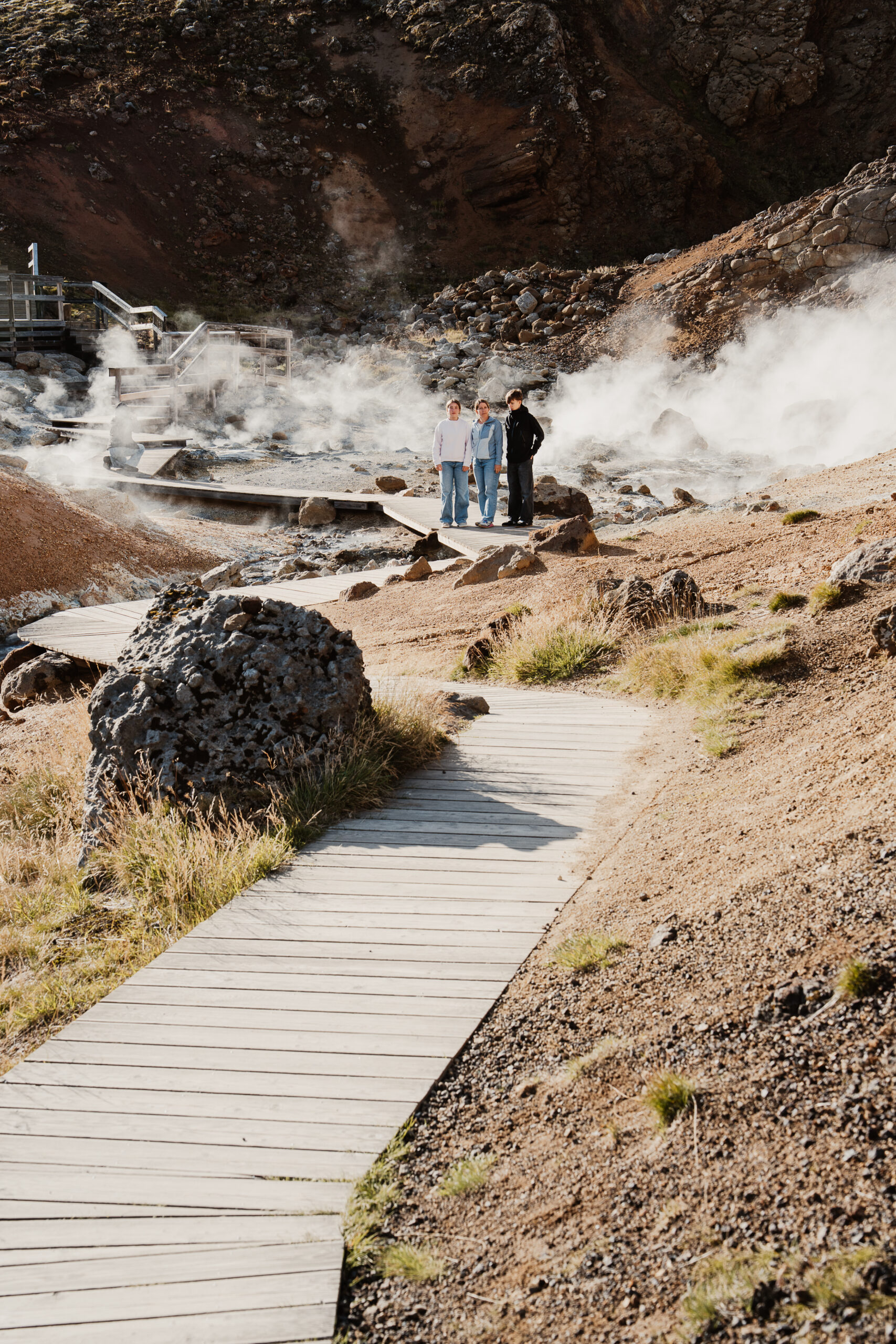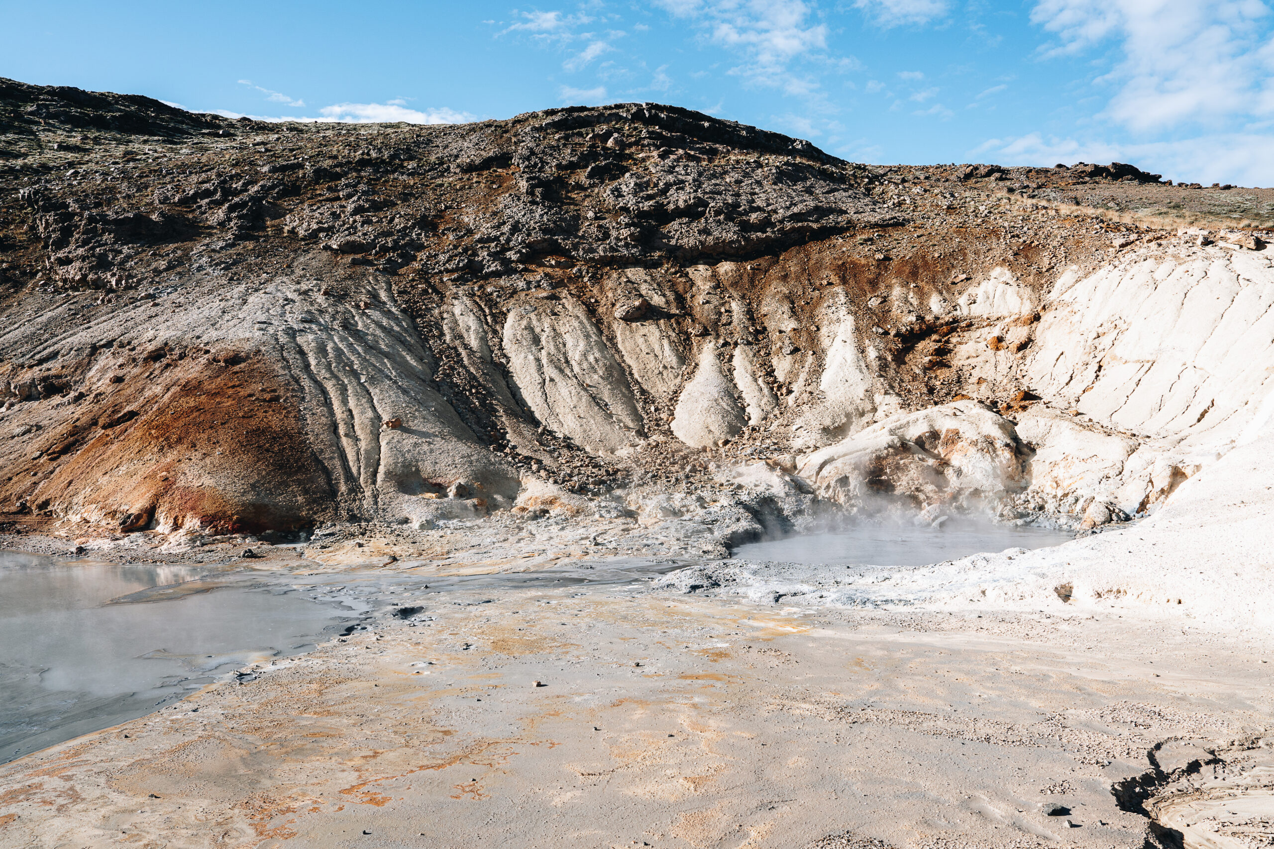 Immerhin haben wir auf der Tour über Grindavík die junge Lava des Vulkans Sundhnukagigar sehen können, der 2024 ausgebrochen war. Spannend war auch der kleine Rundgang durch das geothermische Feld Seltún Geothermal Area mit seinen blubbernden Pods und dampfenden Tümpeln.