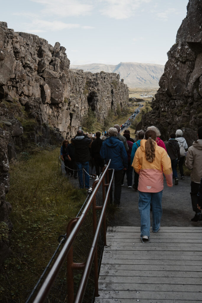 Besonders gefallen hat uns die Landschaft im Þingvellir-Nationalpark mit ihrem geologischen Hintergrund. Hier triften die Eurasische und Amerikanische Platte jedes Jahr um ca. 2cm auseinander. Der Riss ist deutlich zu erkennen. Ein mystischer im positiven Sinne, an dem auch die Versammlung mit der Gründung Islands stattgefunden hat. Leider mussten wir ihn mit vielen Reisegruppen teilen…