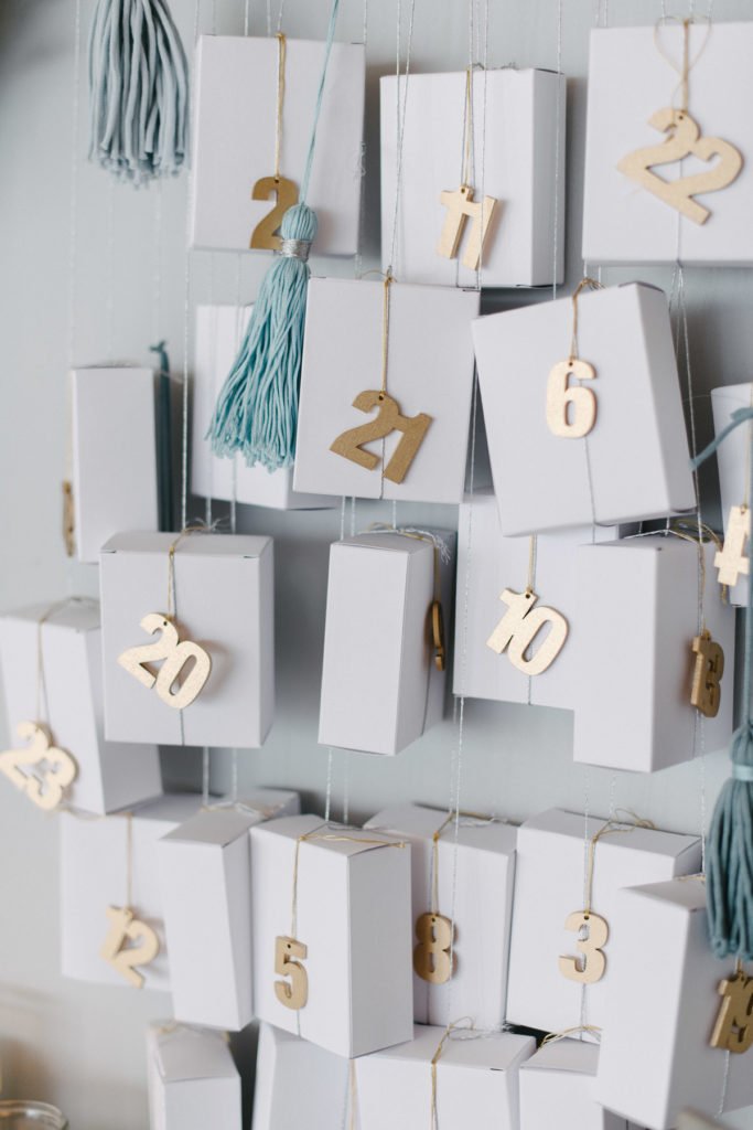 DIY Adventskalender mit 24 weißen Schachteln