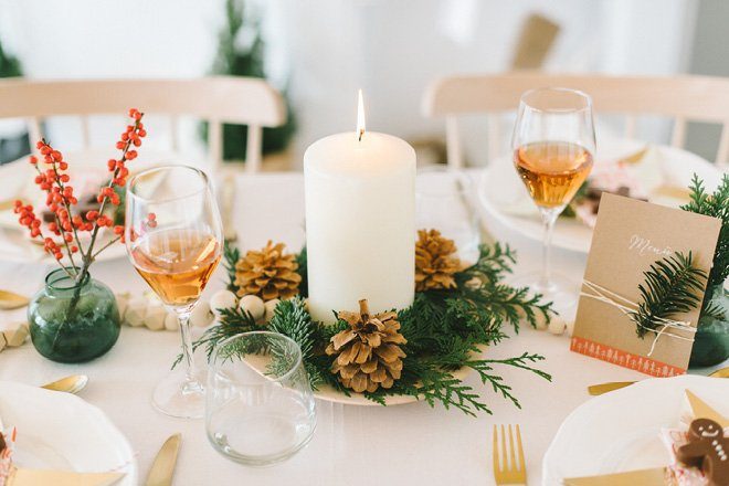 Kuschlig und gemütlich darf es an Weihnachten gerne sein. Dieser Weihnachtstisch könnte auch in einer urigen Hütte in den Bergen stehen, in der im Kamin ein Feuer flackert…