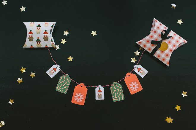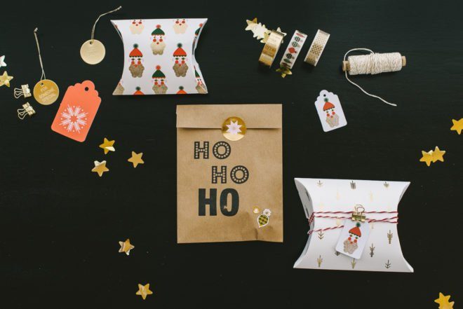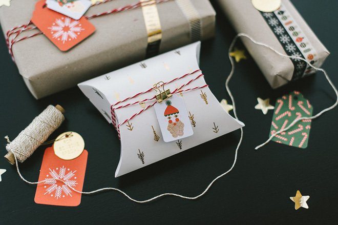 Wir haben ein bisschen gespielt und diese Verpackungsideen für Euch zusammen gestellt. Hauptbeteiligte: stinknormales Packpapier, ein sechsteiliges Kissenschachteln-Set, weihnachtliches Masking Tape und ein paar Anhänger mit fröhlichen Motiven.