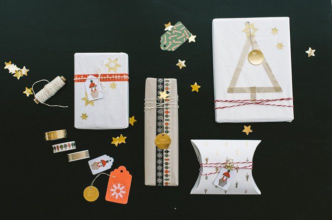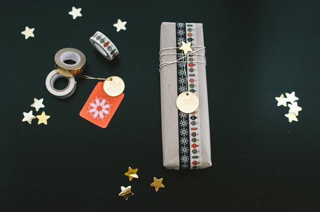 Dass Masking Tape ein absoluter Kracher und unheimlich guter Allrounder ist, wissen wir schon lange. Recht neu sind diese goldenen Tapes, die richtig schön glänzen und sich prima mit anderen weihnachtlichen Motiven kombinieren lassen. Ein Streifen hier, ein Kleber dort – mit diesem Klebeband Set ist es wirklich einfach aus einem schnöden Paket ein kleines Geschenkkunstwerk zu machen.